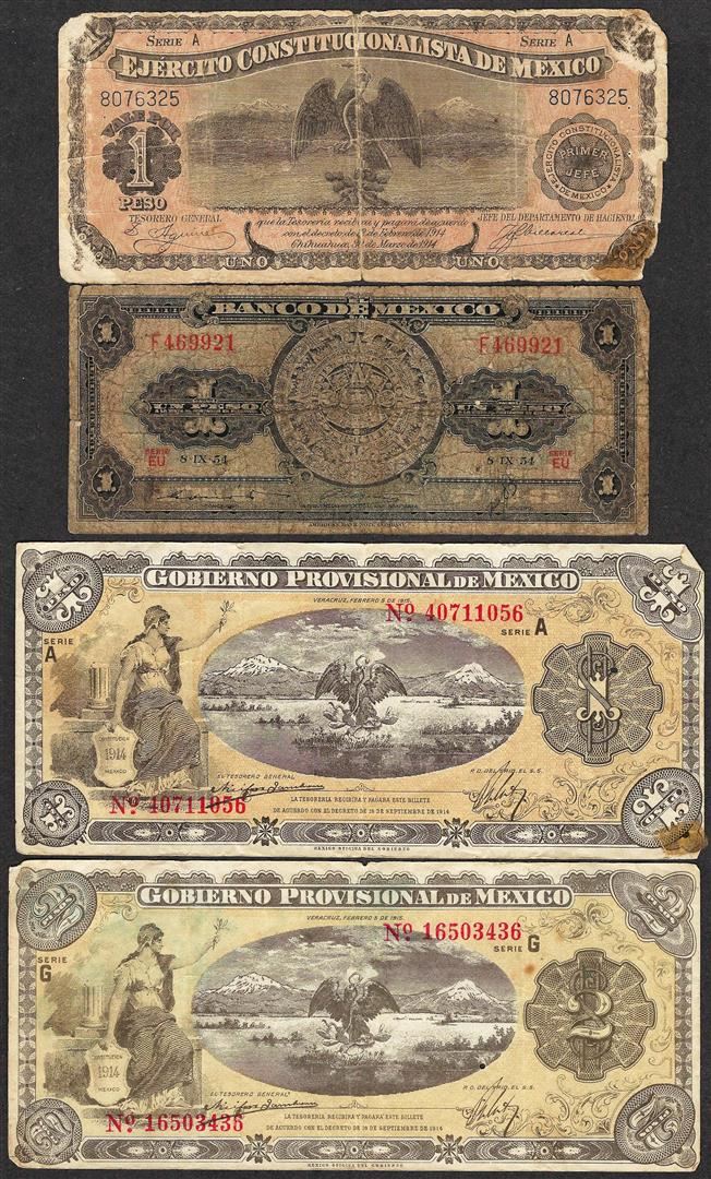 One Lot of (4) Misc. Mexico Peso Currency Notes.