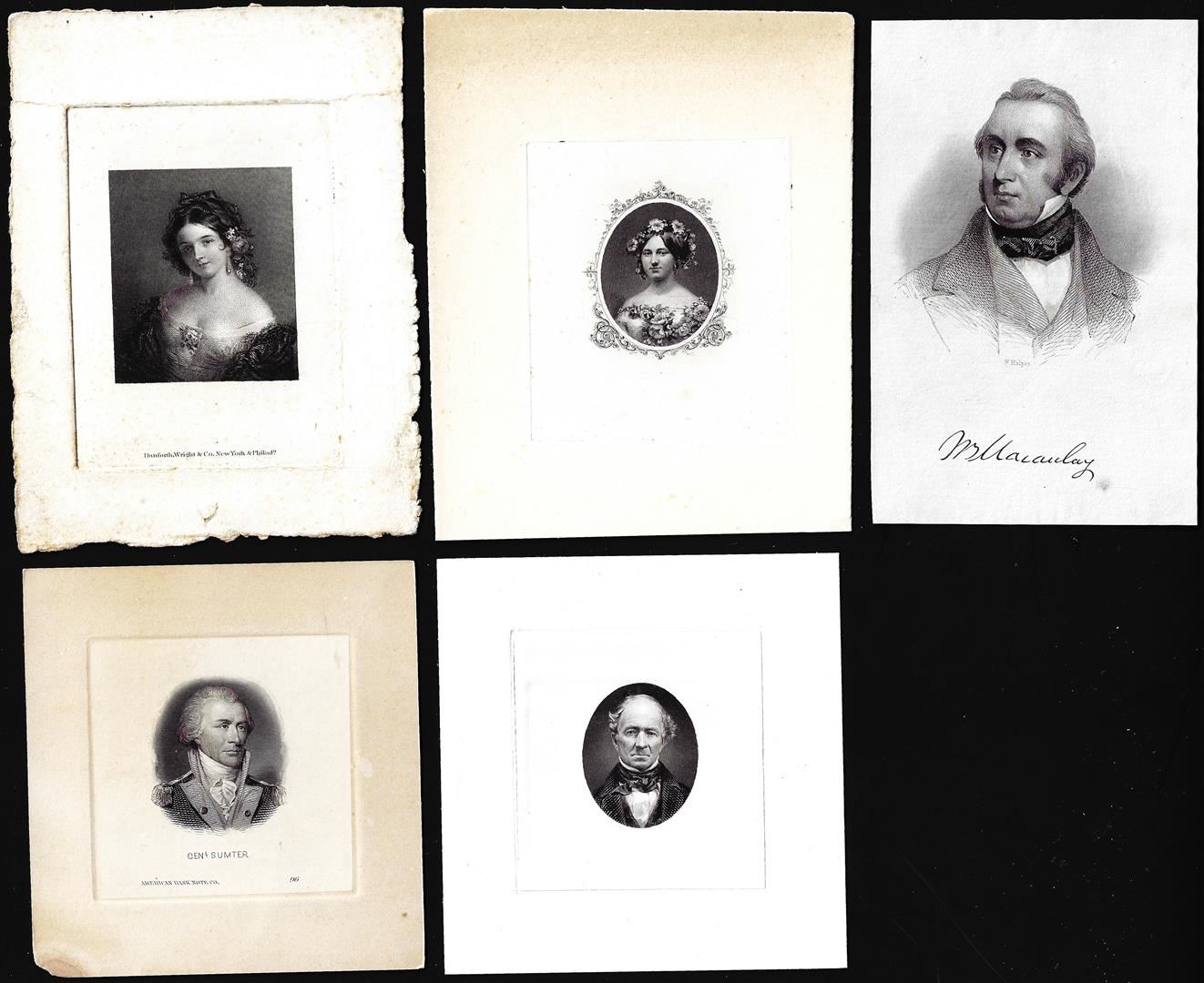 One Lot of (5) 1800's Vignette from Original Proof Plates.