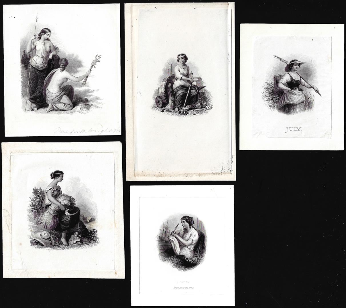 One Lot of (5) 1800's Vignette from Original Proof Plates.