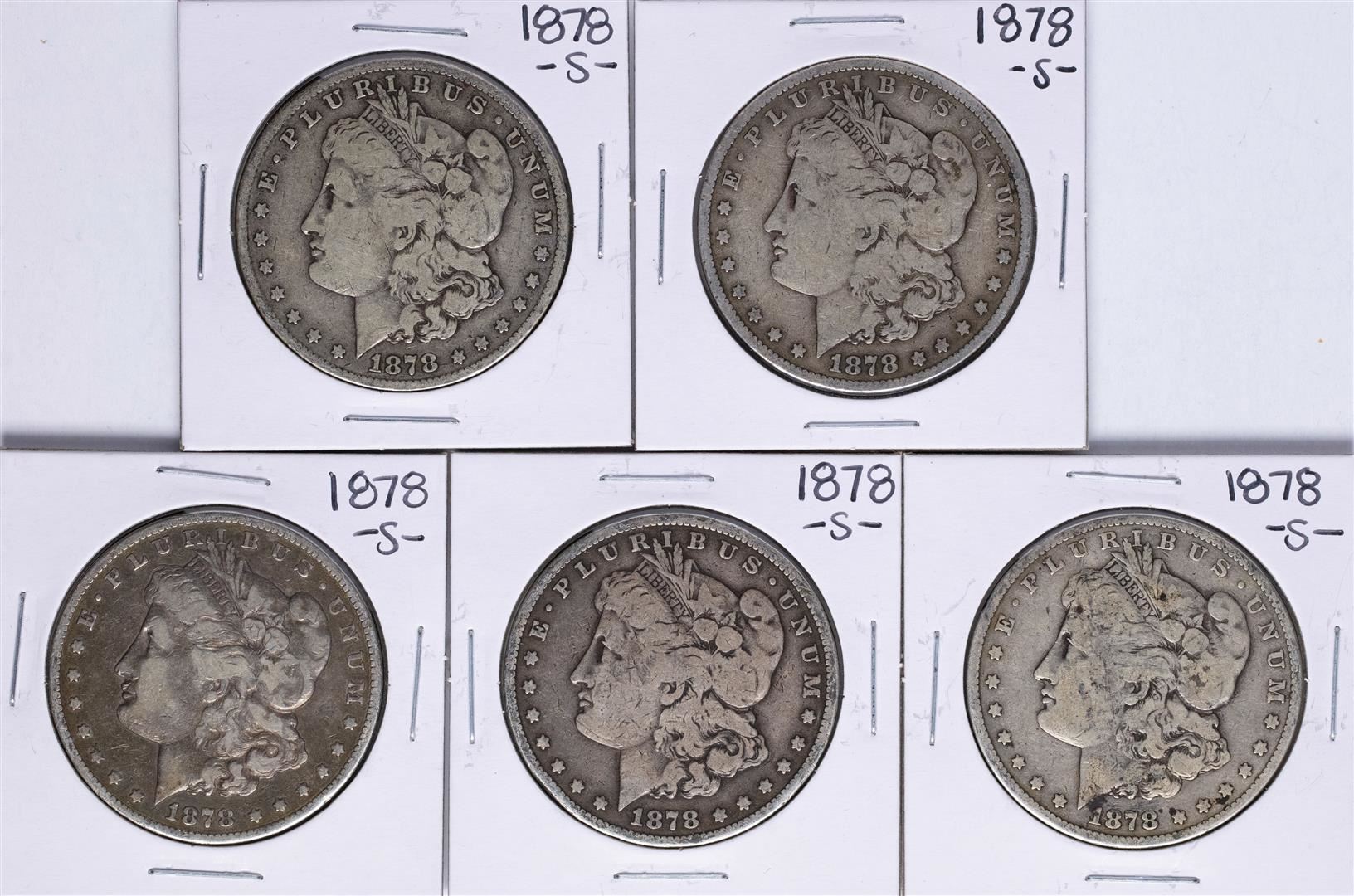 One Lot of (5) 1878-S $1 Morgan Silver Dollar Coins.