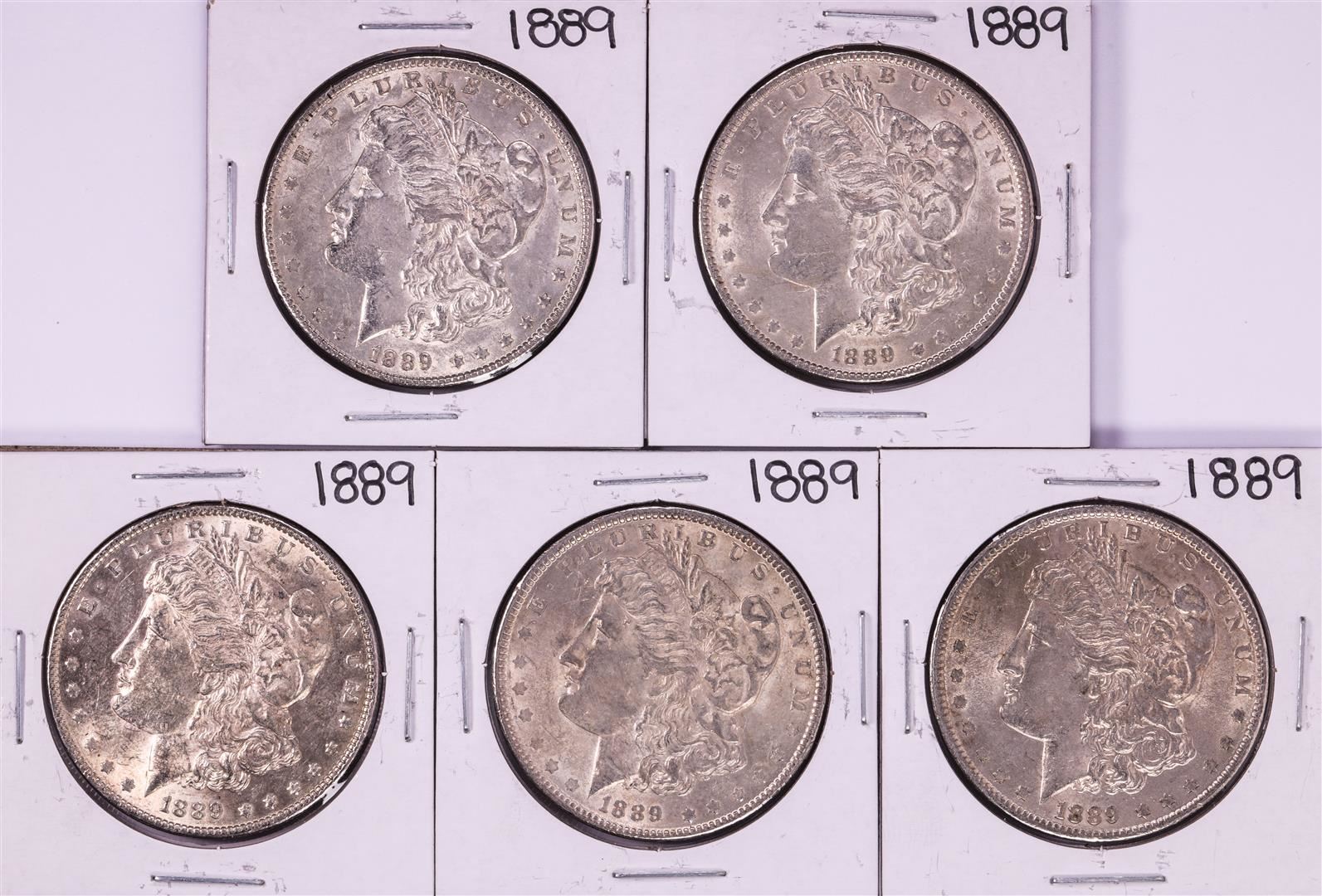 One Lot of (5) 1889 $1 Morgan Silver Dollar Coins.