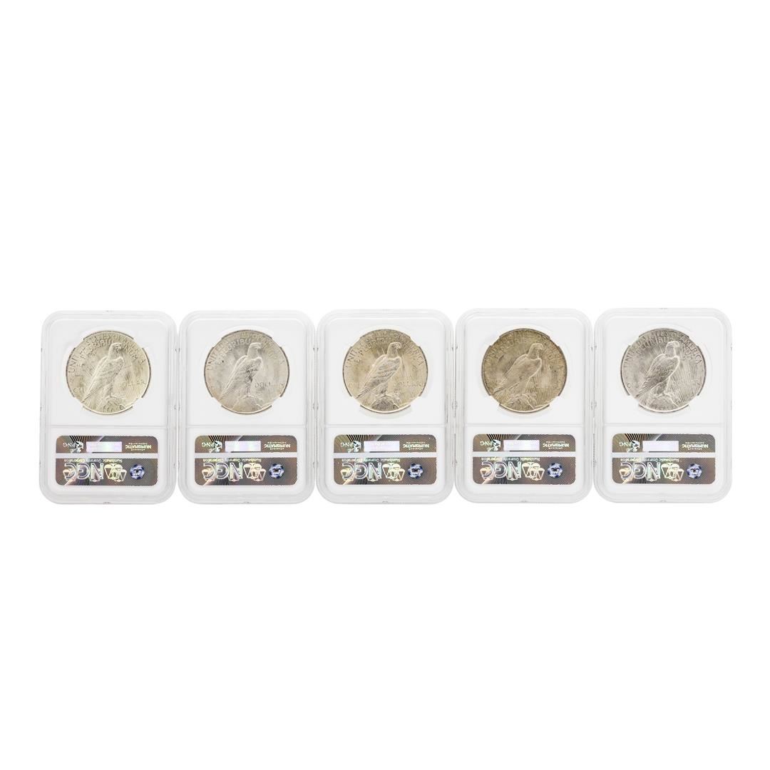 One Lot of (5) 1922 $1 Peace Silver Dollar Coins NGC MS63. NGC Certified.