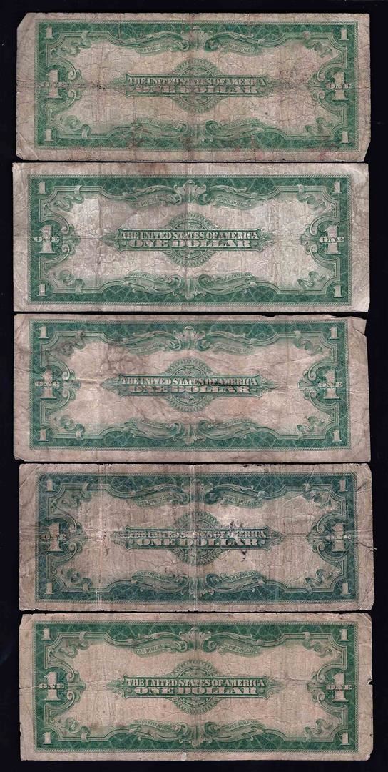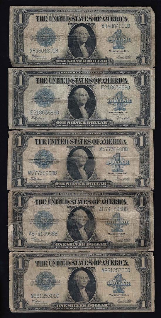 One Lot of (5) 1923 $1 Silver Certificate Notes.