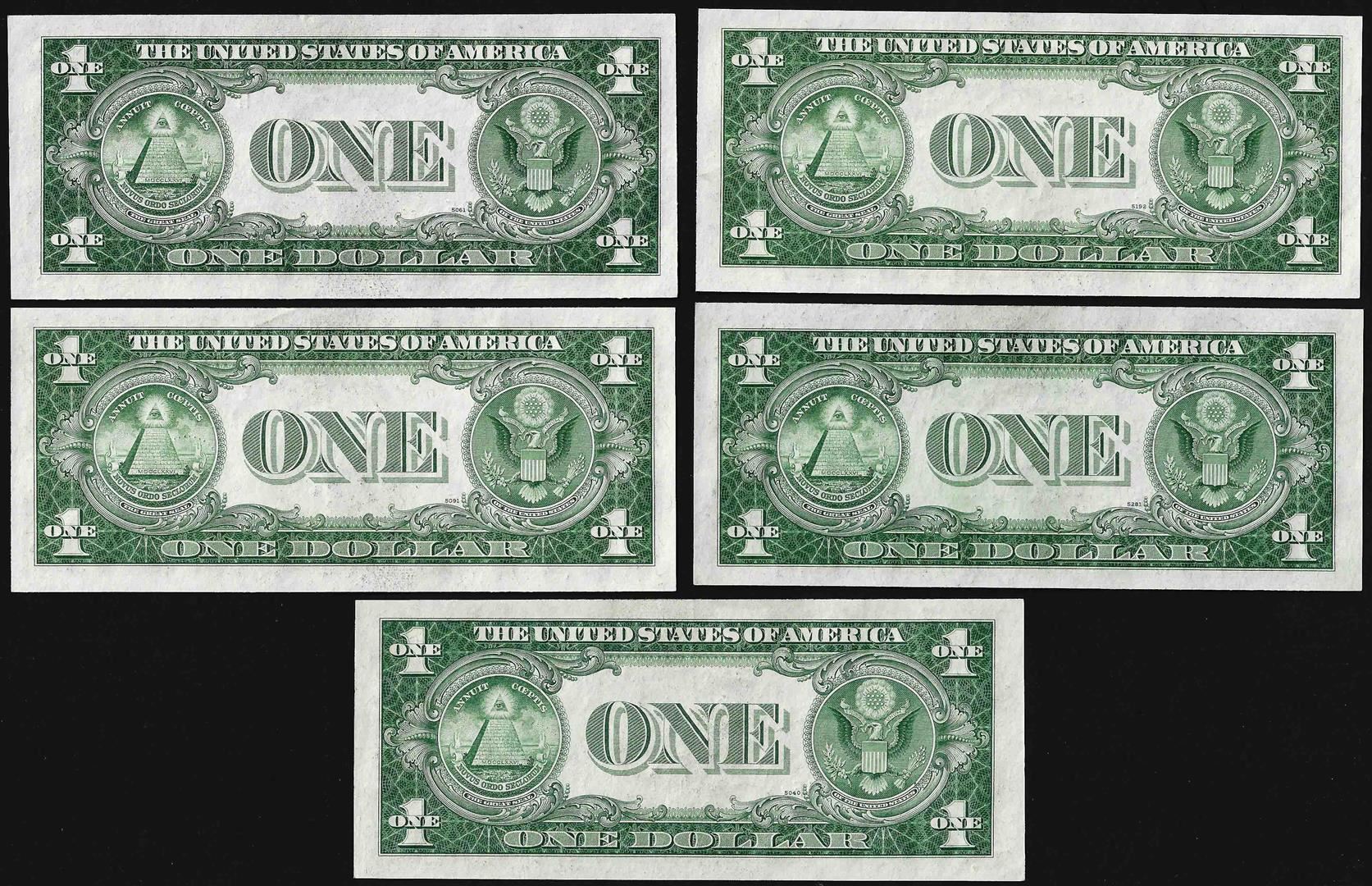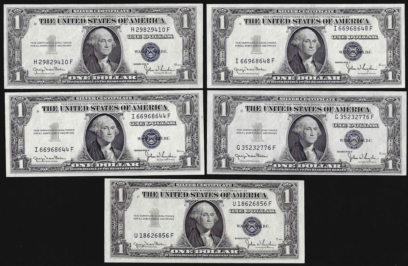 One Lot of (5) 1935D $1 Silver Certificate Notes Narrow Uncirculated.