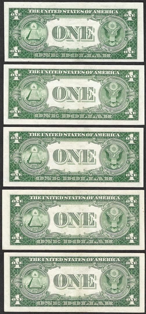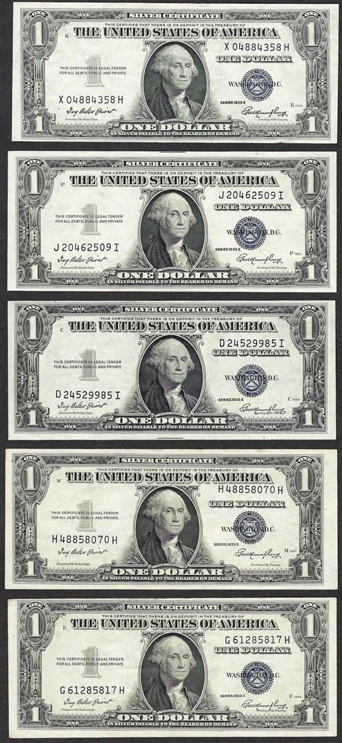 One Lot of (5) 1935F $1 Silver Certificate Notes.