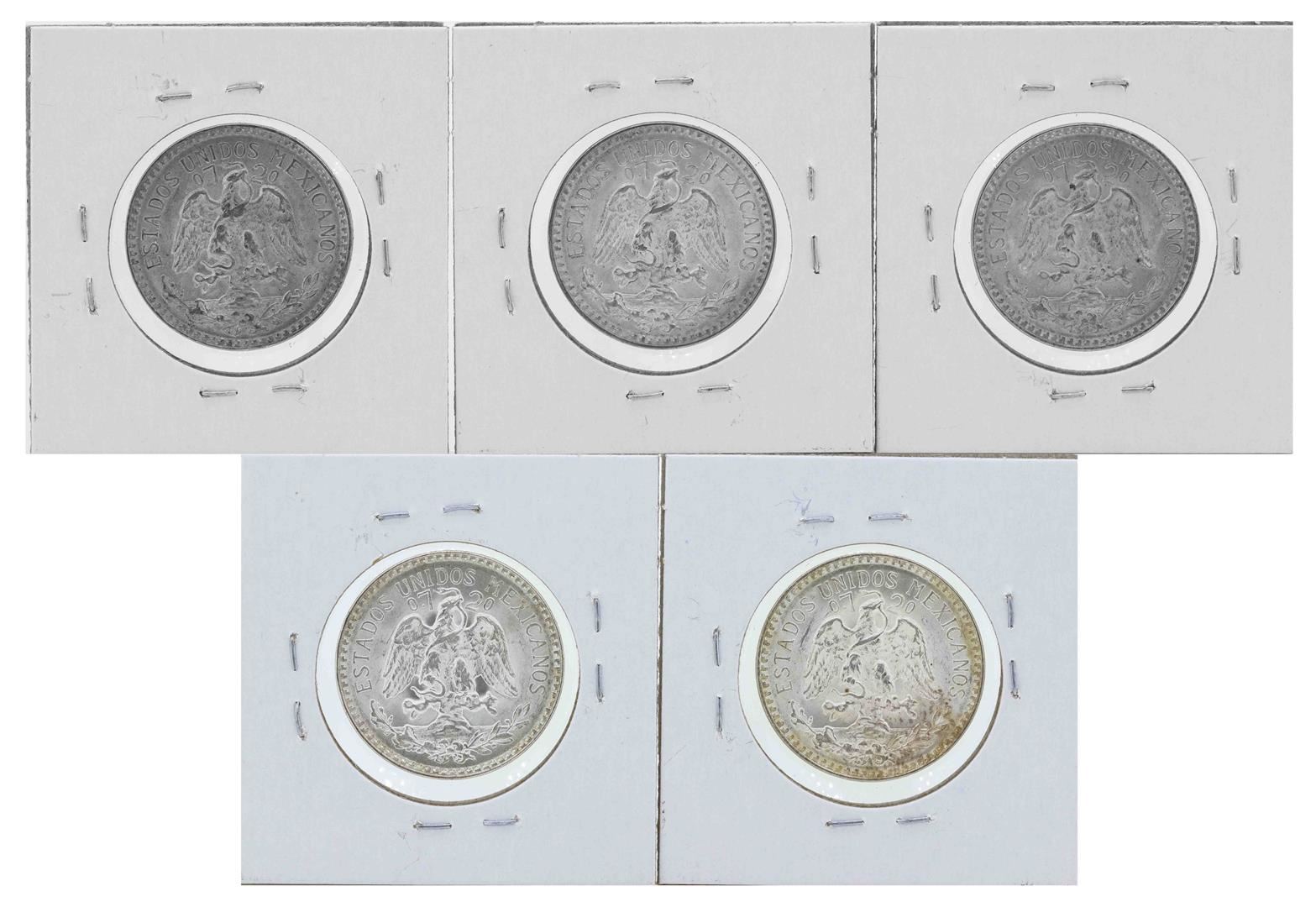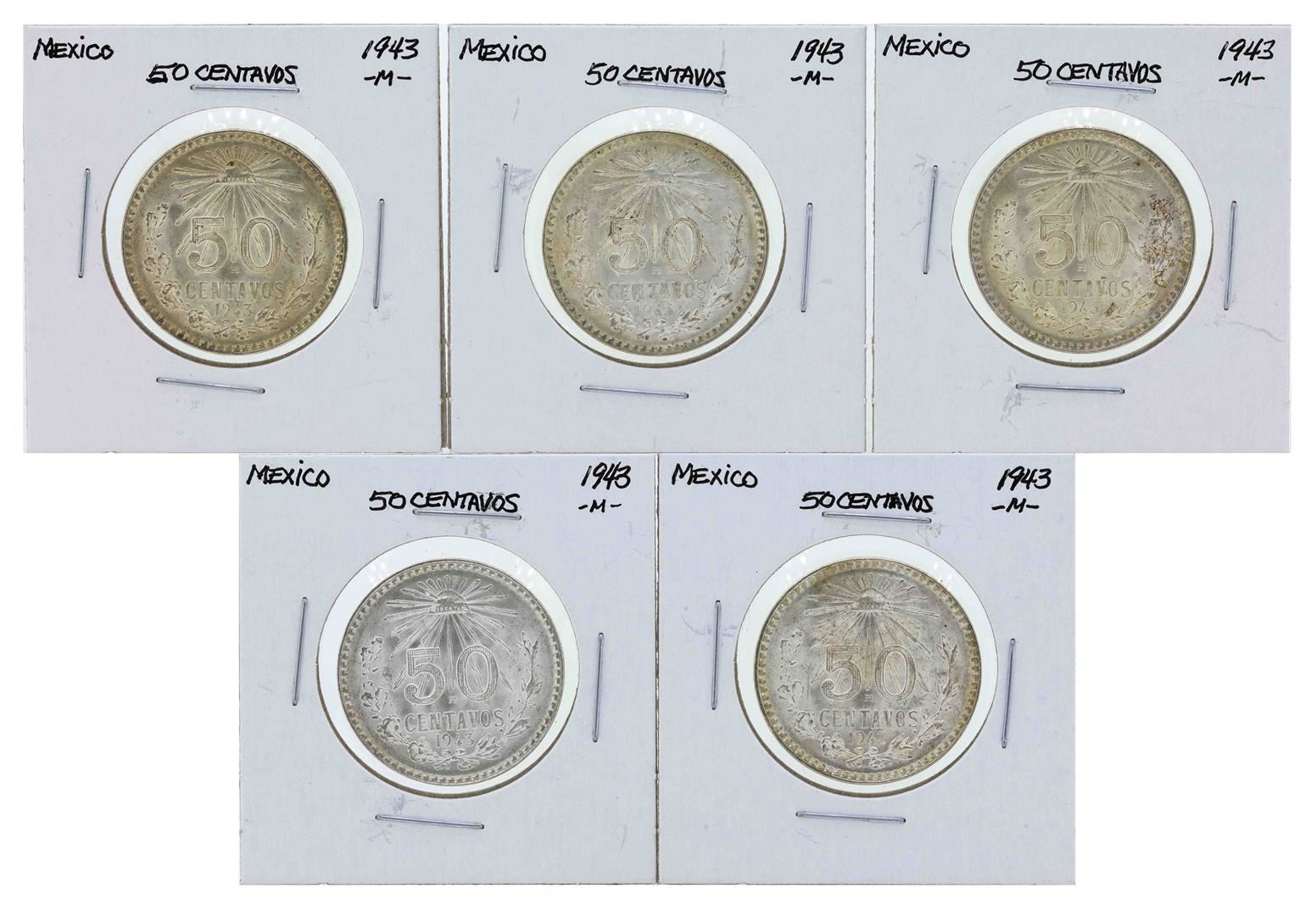 One Lot of (5) 1943M Mexico 50 Centavos Coins.