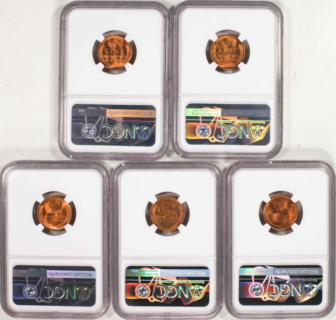 One Lot of (5) 1946-S Lincoln Wheat Cent Coins NGC MS67RD. NGC Certified.