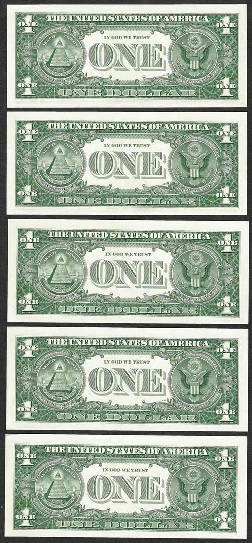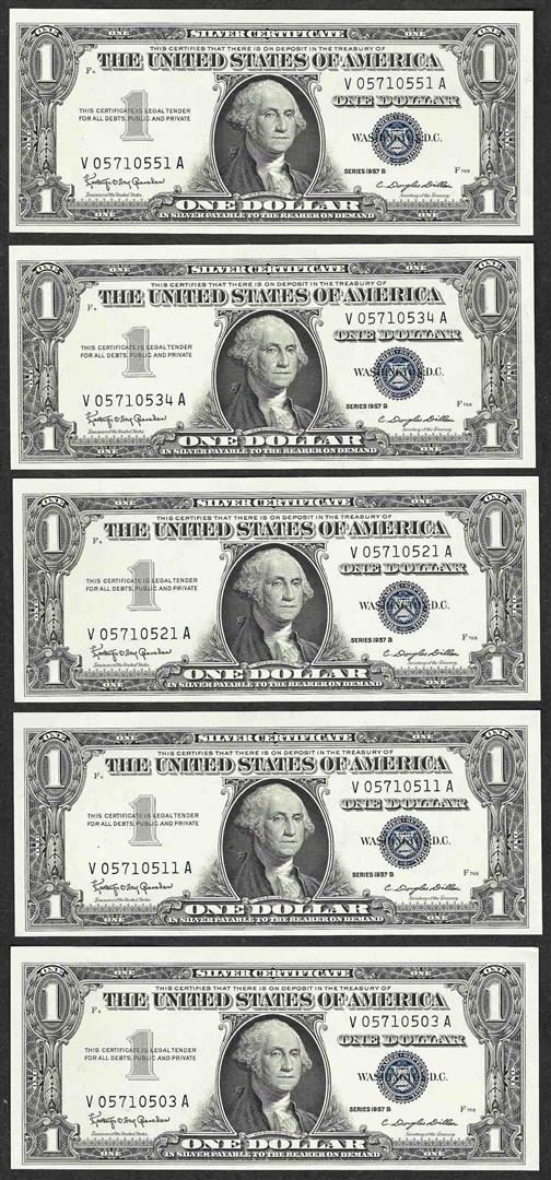 One Lot of (5) 1957B $1 Silver Certificate Notes.