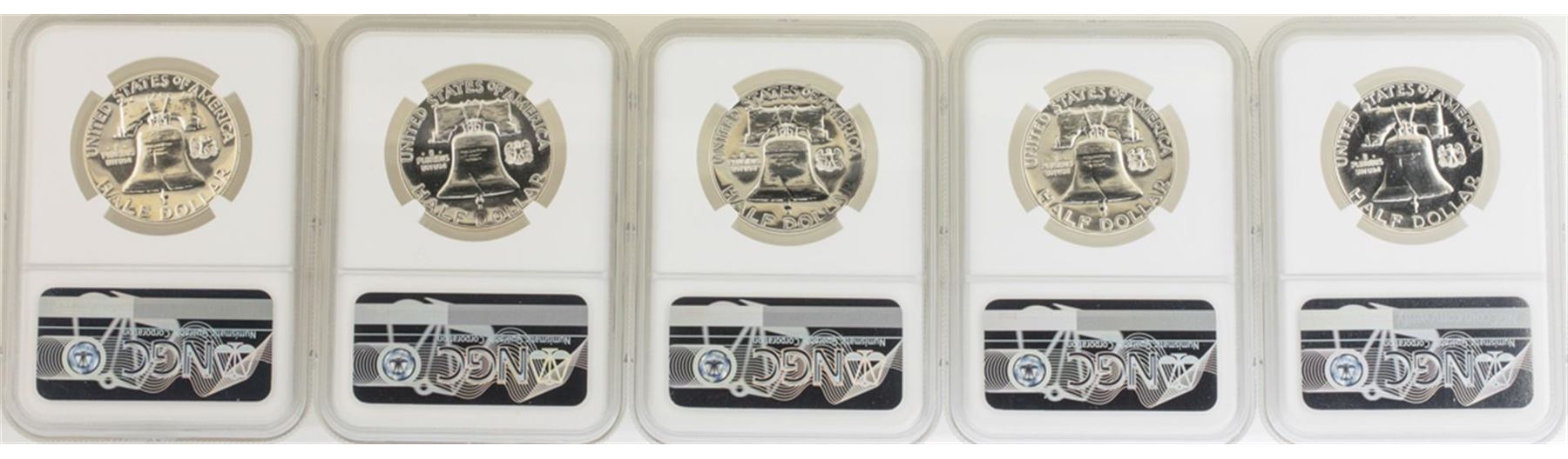Lot of (5) 1959 Proof Franklin Half Dollar Coins NGC PF67