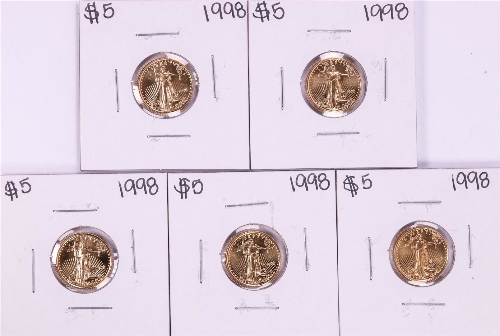 One Lot of (5) 1998 $5 American Gold Eagle Coins.