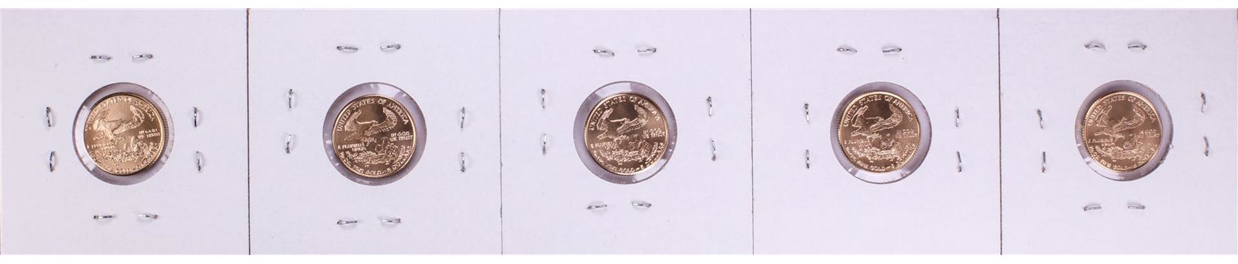 One Lot of (5) 1999 $5 American Gold Eagle Coins.