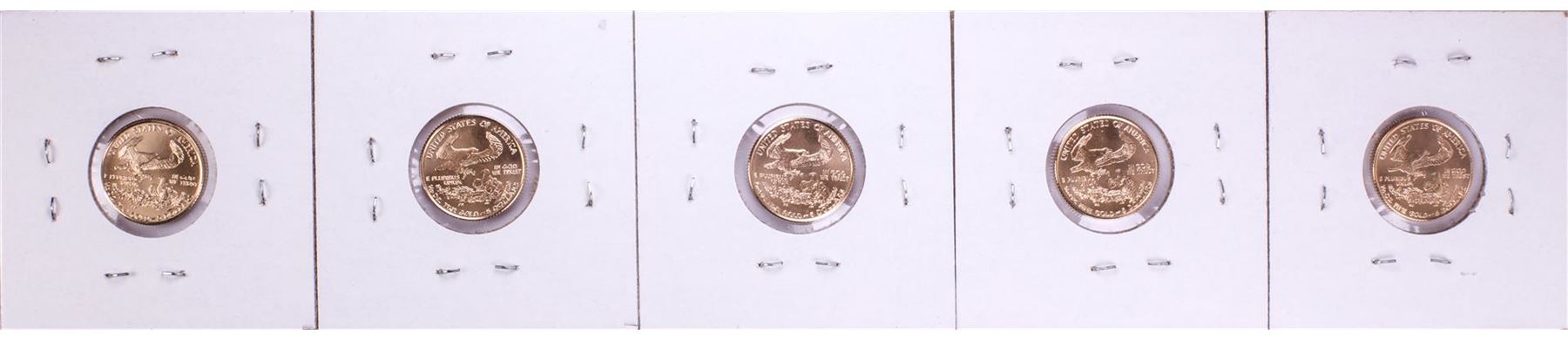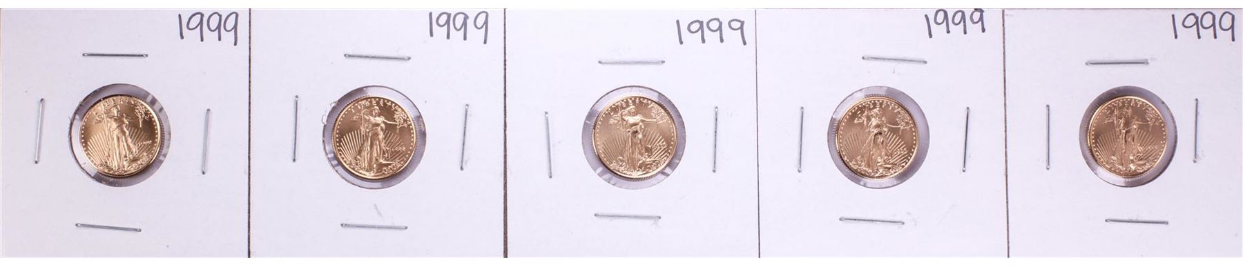 One Lot of (5) 1999 $5 American Gold Eagle Coins.