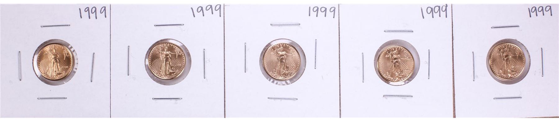 One Lot of (5) 1999 $5 American Gold Eagle Coins.