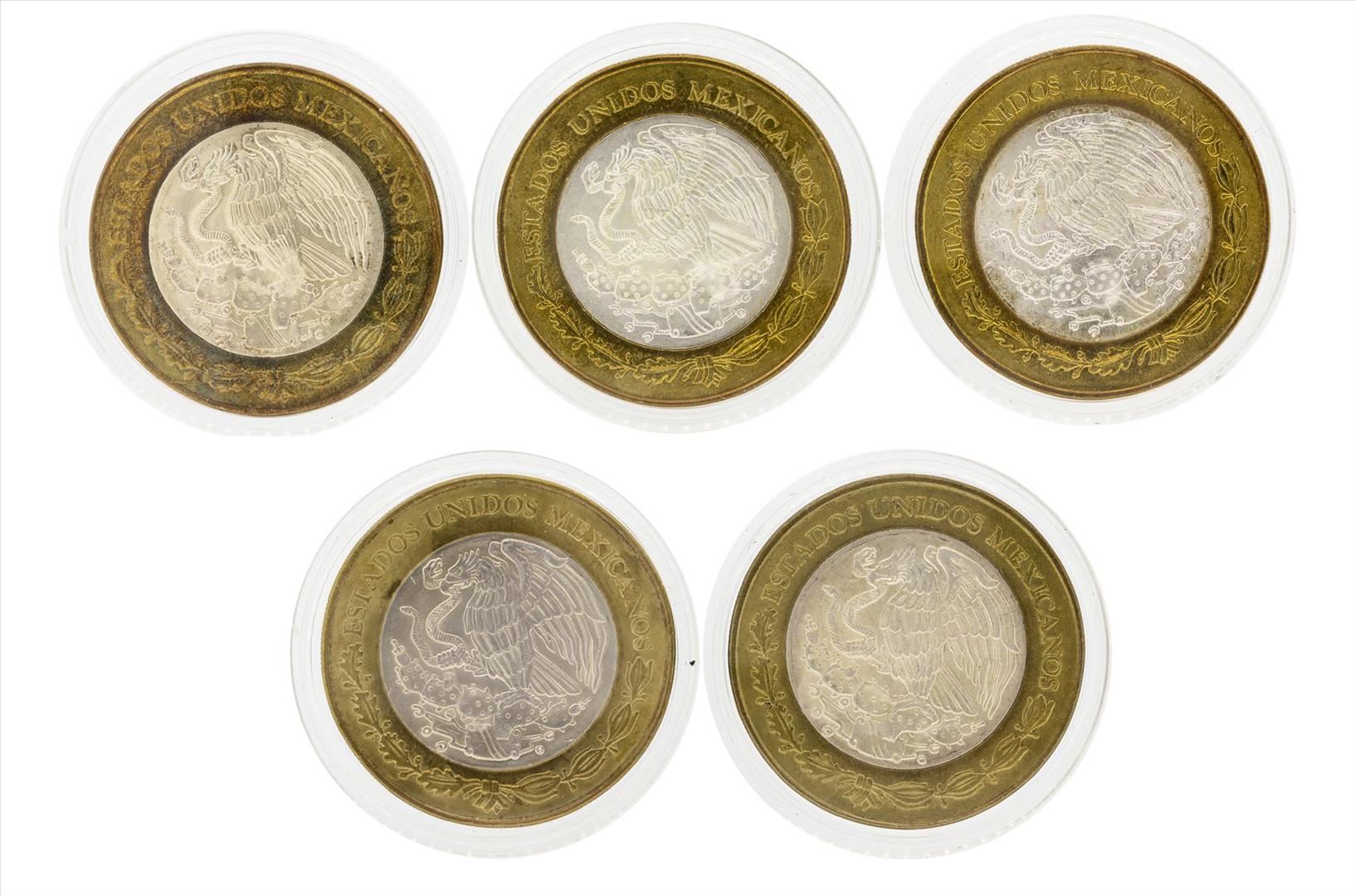 One Lot of (5) 2003-2005 Mexico 100 Pesos Bi-Metallic Coins.