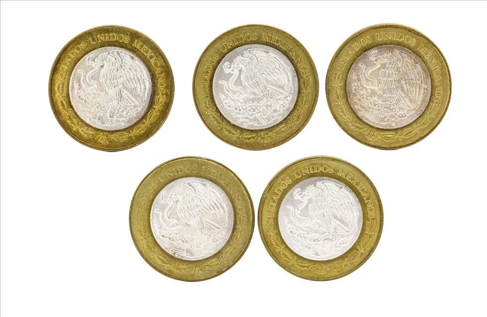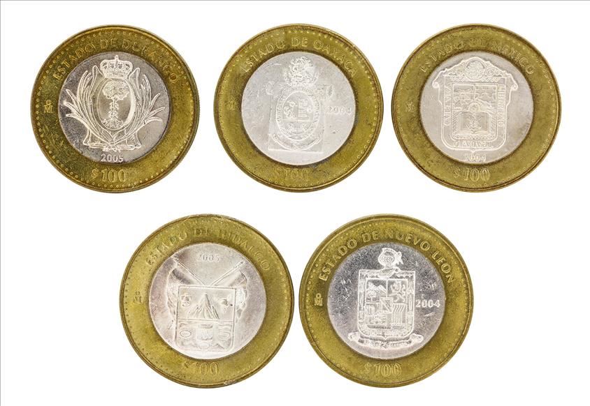 One Lot of (5) 2004-2005 Mexico 100 Pesos Bi-Metallic Coins.