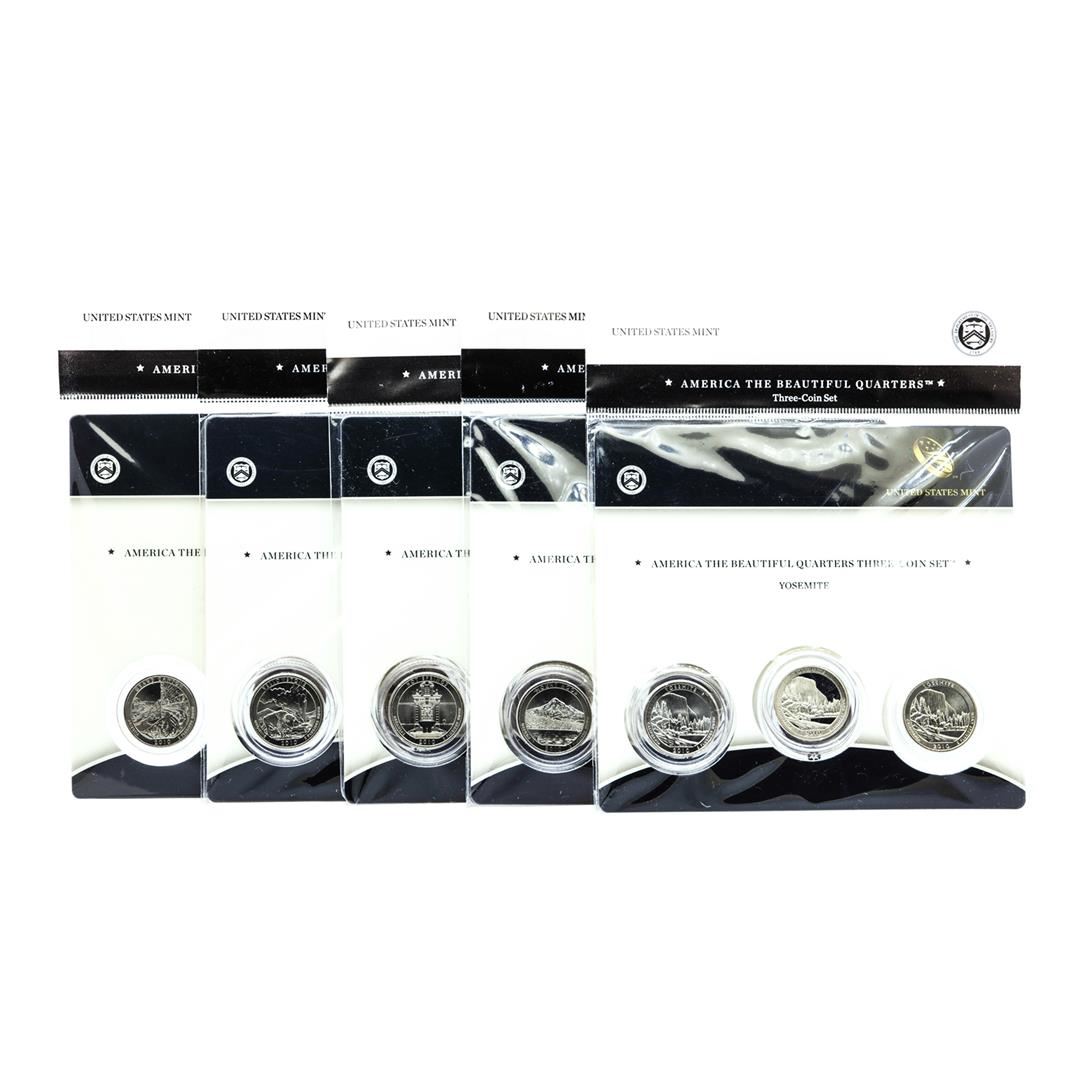 Lot of (5) 2010 America The Beautiful Three-Coin Quarter Sets