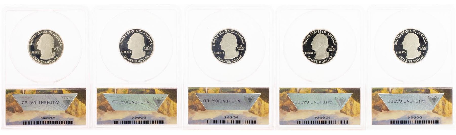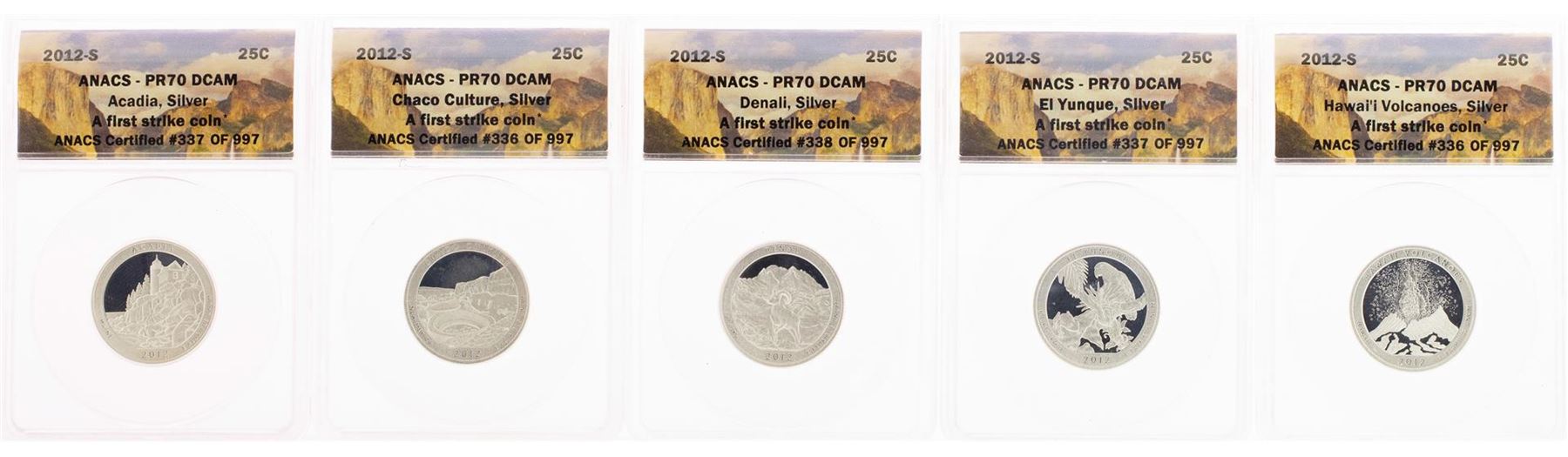 Lot of (5) 2012-S Proof Silver America Beautiful Quarter Coins ANACS PR70 DCAM