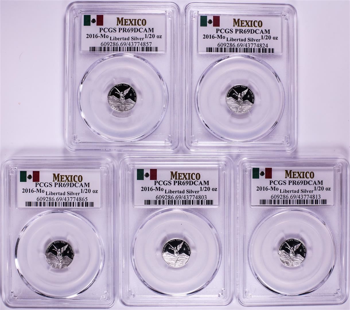 Lot of (5) 2016-Mo Mexico Proof 1/20 oz Silver Libertad Coin PCGS PR69DCAM