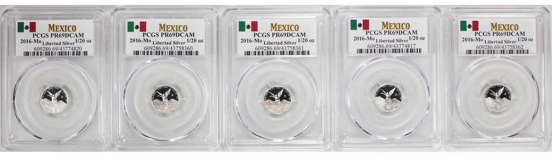 Lot of (5) 2016-Mo Mexico Proof 1/20 oz Silver Libertad Coins PCGS PR69DCAM