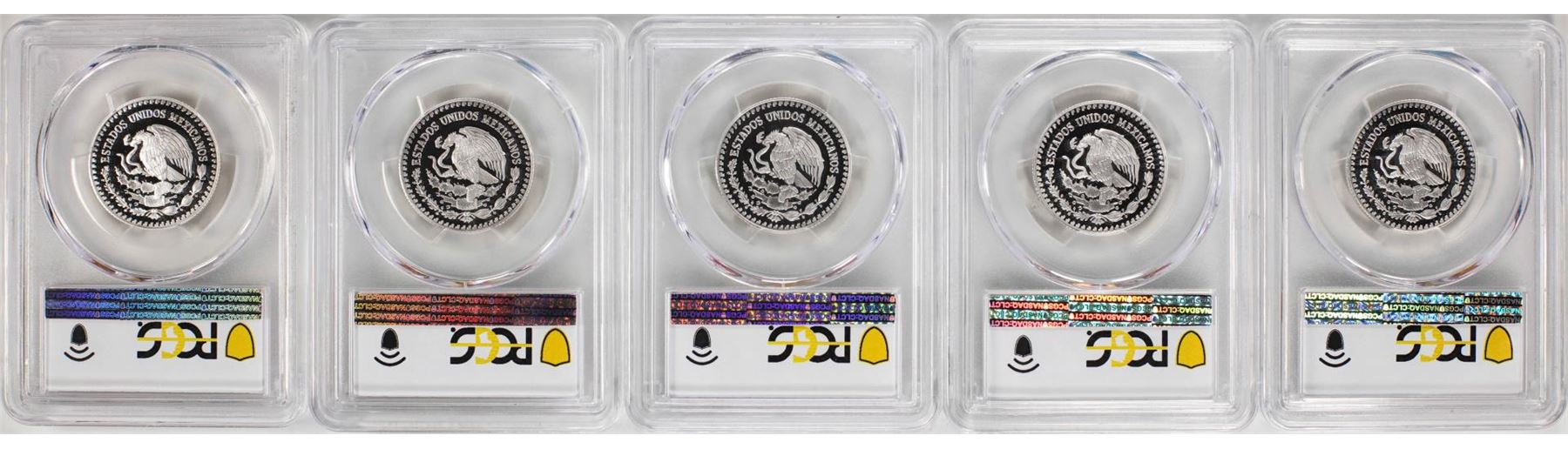 Lot of (5) 2016-Mo Mexico Proof 1/4 oz Silver Libertad Coins PCGS PR69DCAM