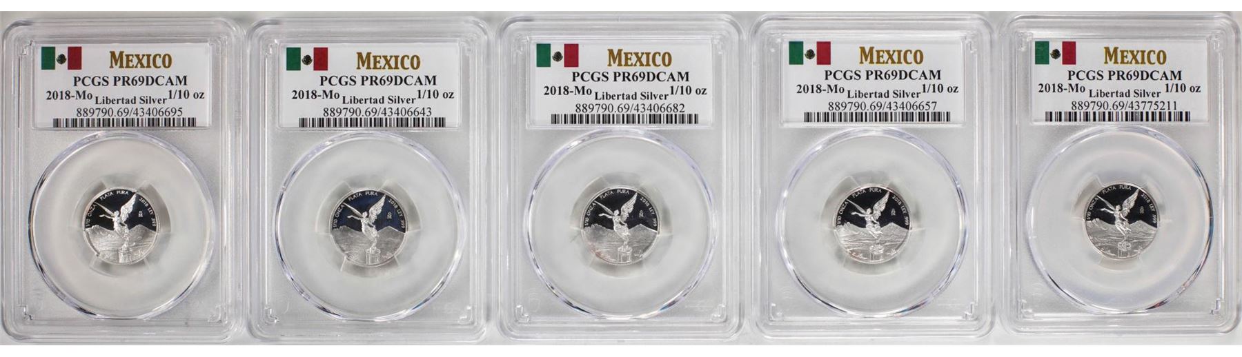 Lot of (5) 2018-Mo Mexico Proof 1/10 oz Silver Libertad Coins PCGS PR69DCAM