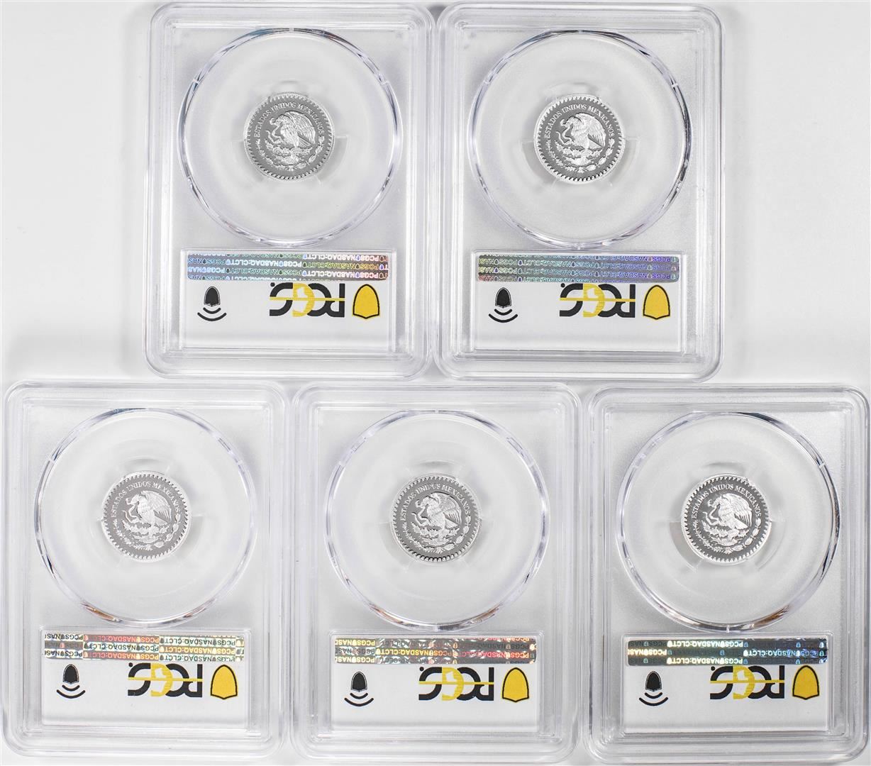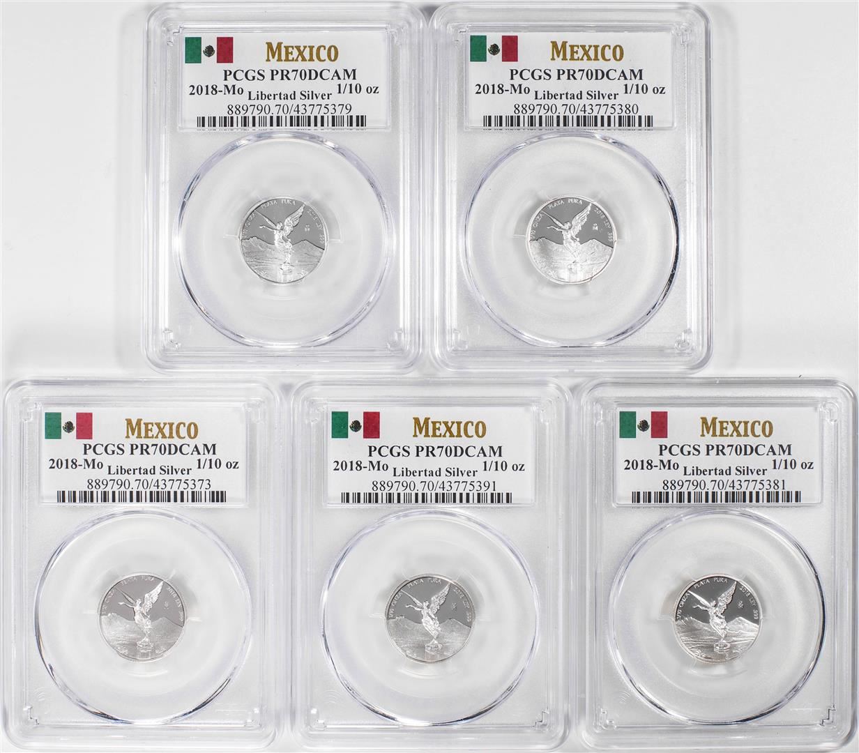 Lot of (5) 2018-Mo Mexico Proof 1/10 oz Silver Libertad Coins PCGS PR70DCAM