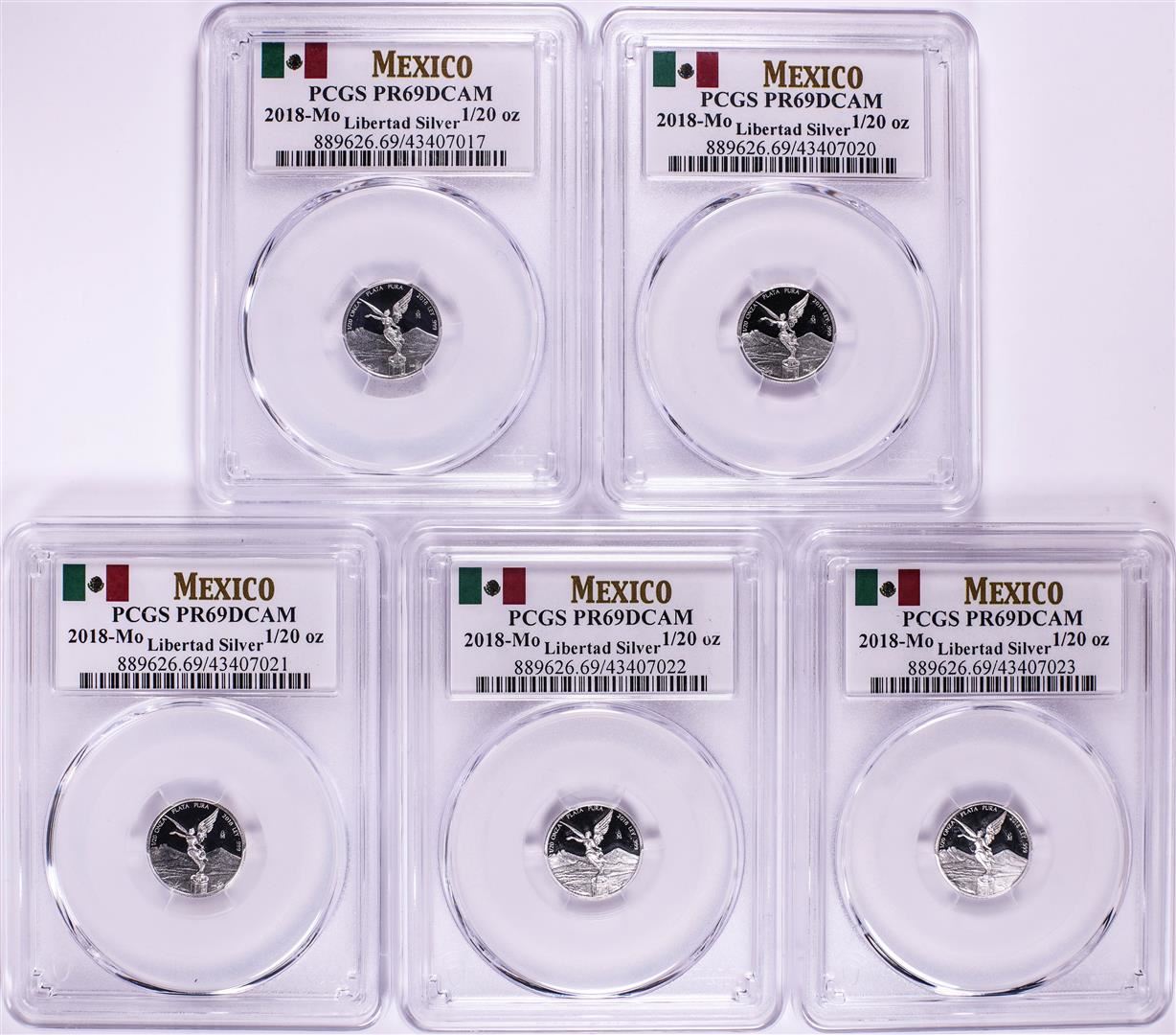 Lot of (5) 2018-Mo Mexico Proof 1/20 oz Silver Libertad Coin PCGS PR69DCAM