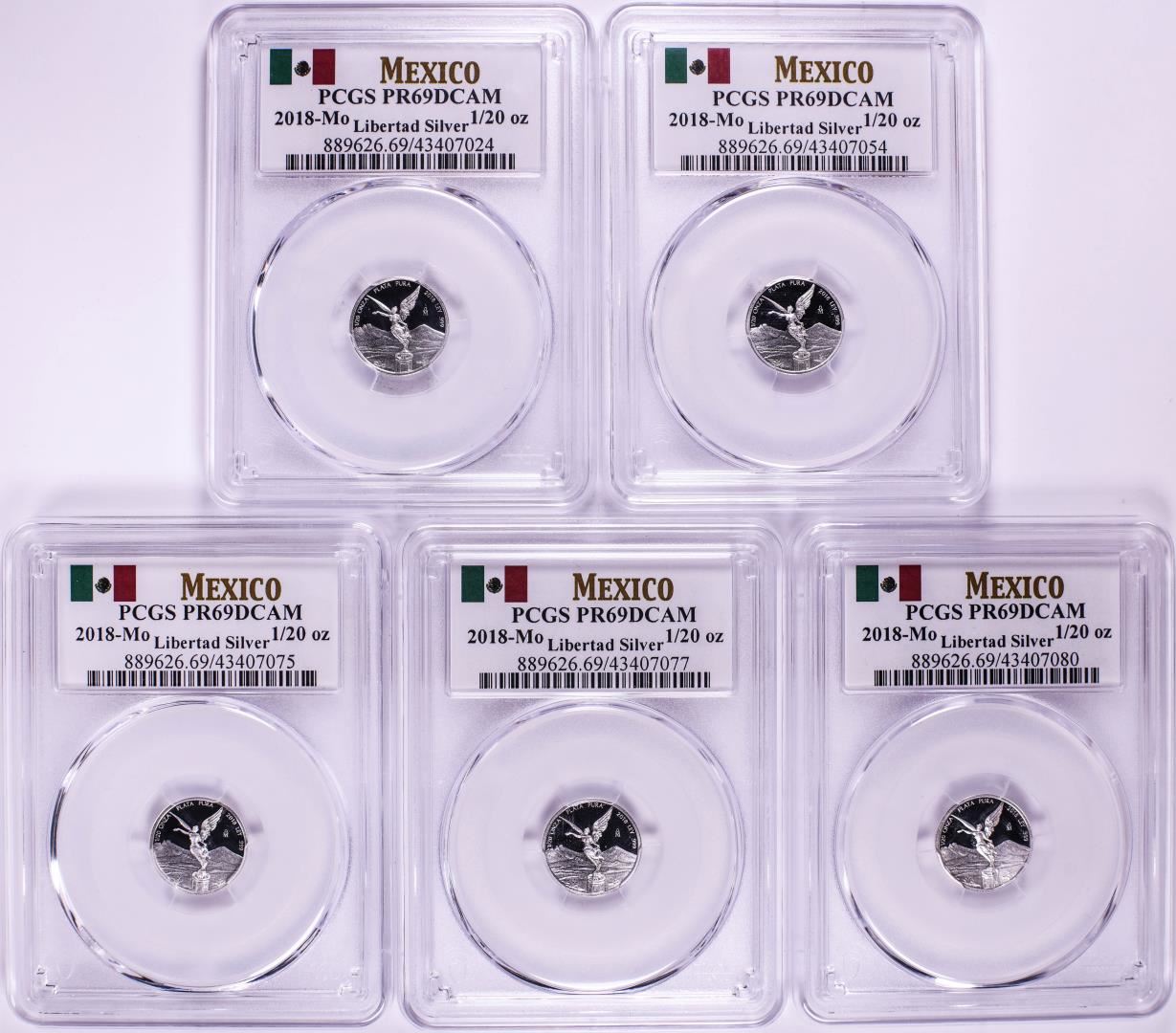 Lot of (5) 2018-Mo Mexico Proof 1/20 oz Silver Libertad Coin PCGS PR69DCAM