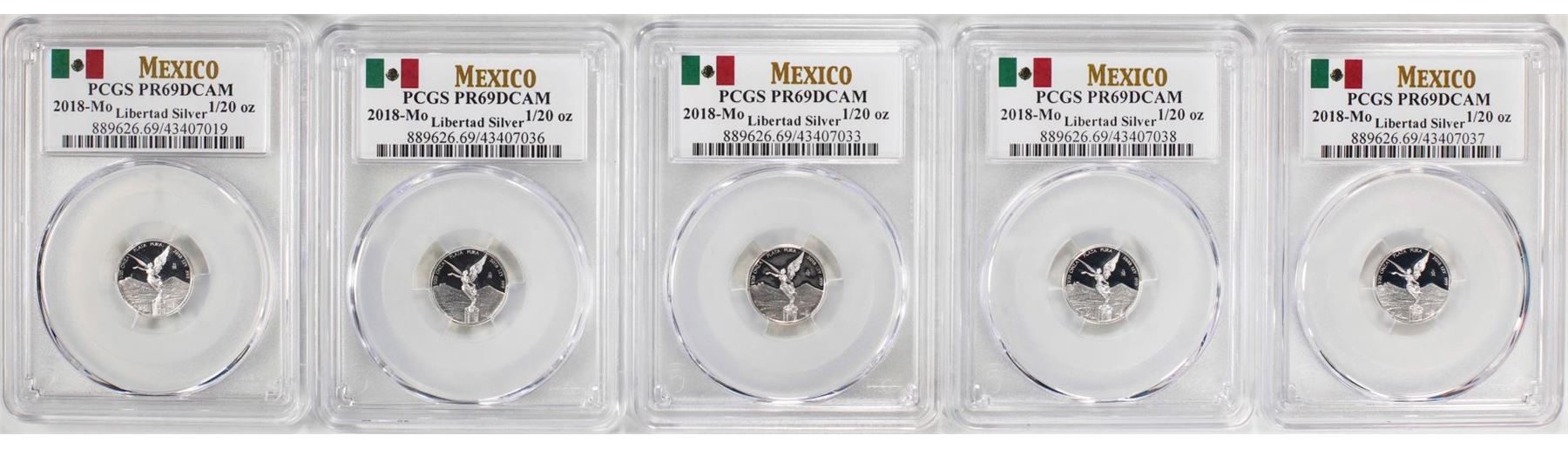 Lot of (5) 2018-Mo Mexico Proof 1/20 oz Silver Libertad Coins PCGS PR69DCAM