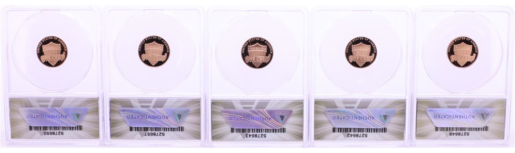 One Lot of (5) 2019-W Proof Lincoln Cent Coins ANACS PF69 DCAM. ANACS Certified.