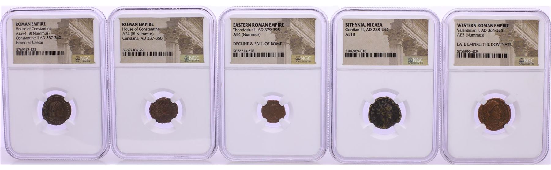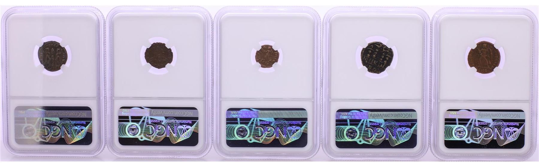One Lot of (5) Ancient Roman Empire Coins NGC Certified. NGC Certified.