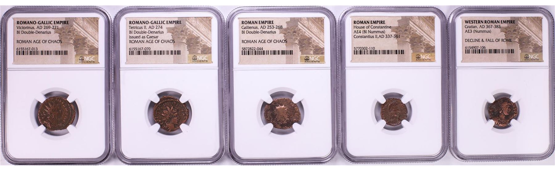 One Lot of (5) Ancient Roman Empire Coins NGC Certified. NGC Certified.