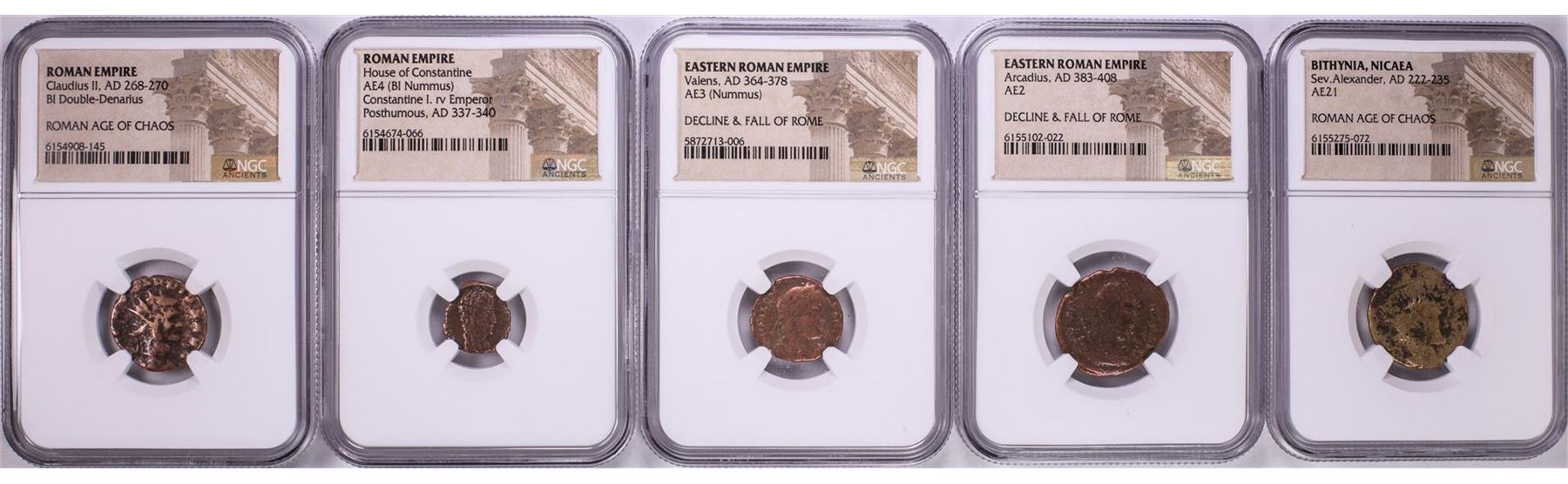 One Lot of (5) Ancient Roman Empire Coins NGC Certified. NGC Certified.