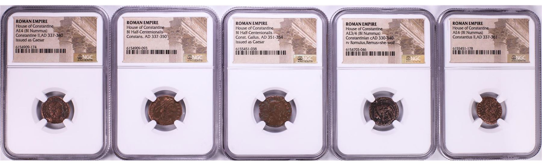 One Lot of (5) Ancient Roman Empire Coins NGC Certified. NGC Certified.