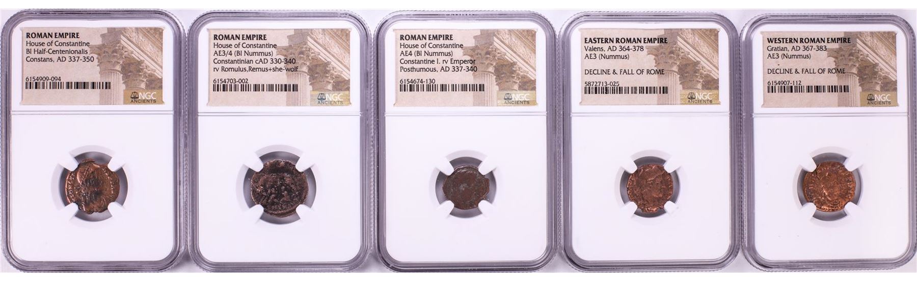One Lot of (5) Ancient Roman Empire Coins NGC Certified. NGC Certified.