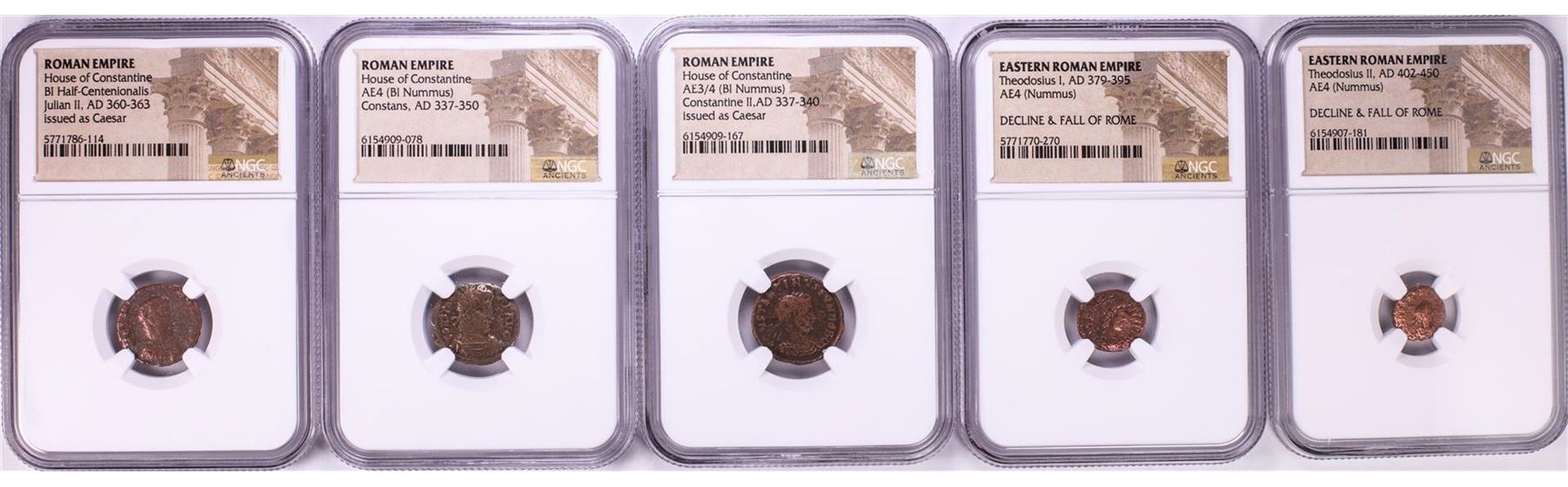 One Lot of (5) Ancient Roman Empire Coins NGC Certified. NGC Certified.
