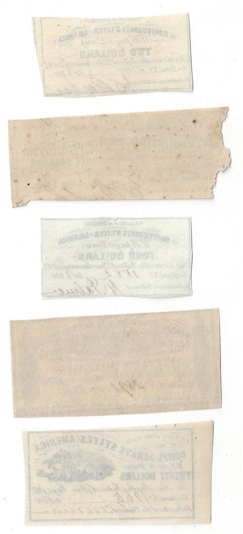 One Lot of (5) Assorted Confederate CSA Bonds.