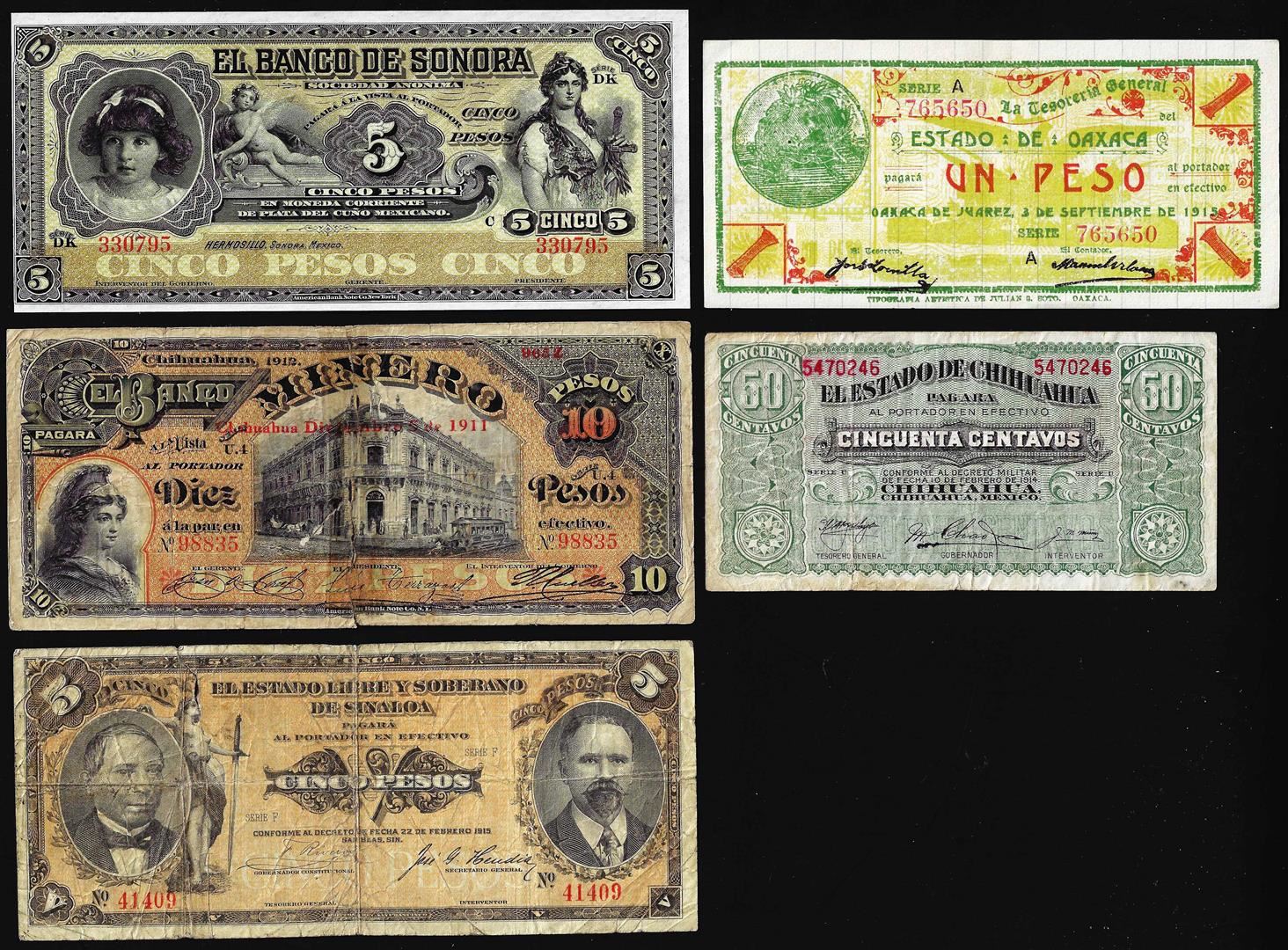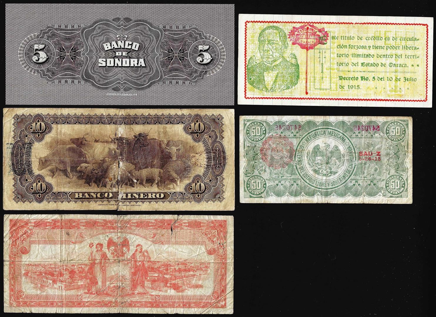 One Lot of (5) Assorted Mexican Revolution Currency Notes.