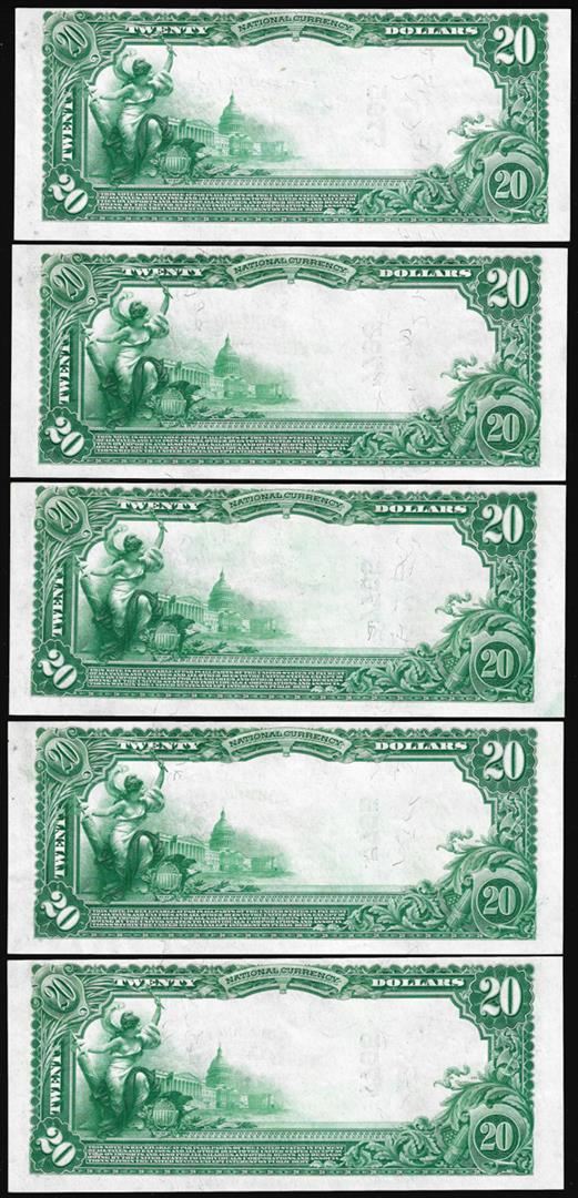 Lot of (5) Consecutive 1902PB $20 Tiffin, Ohio CH# 7795 National Currency Notes