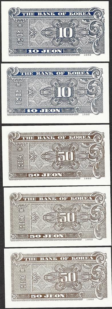 Lot of (5) Miscellaneous Bank of Korea Currency Notes