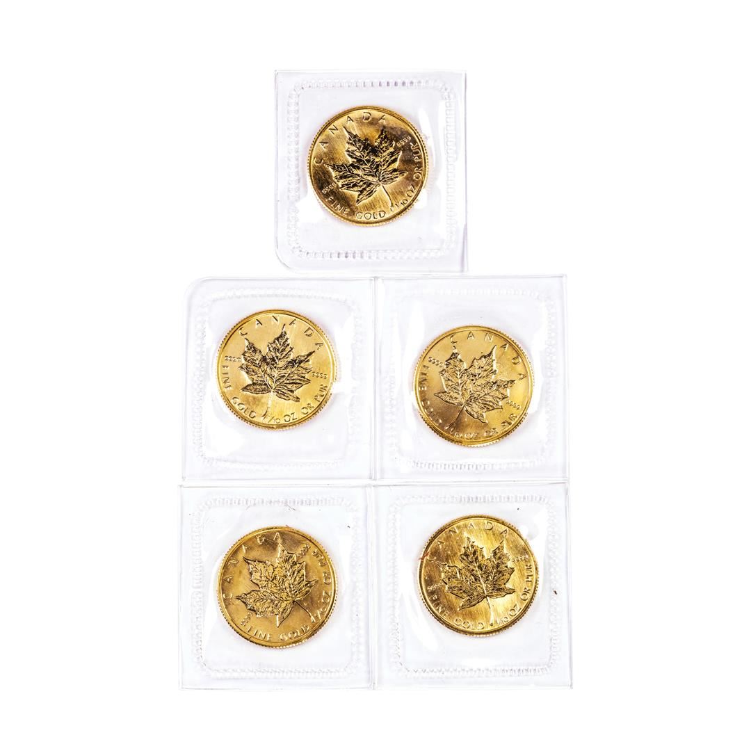 One Lot of (5) Sealed 1986 Canadian $5 Maple Leaf Gold Coins.