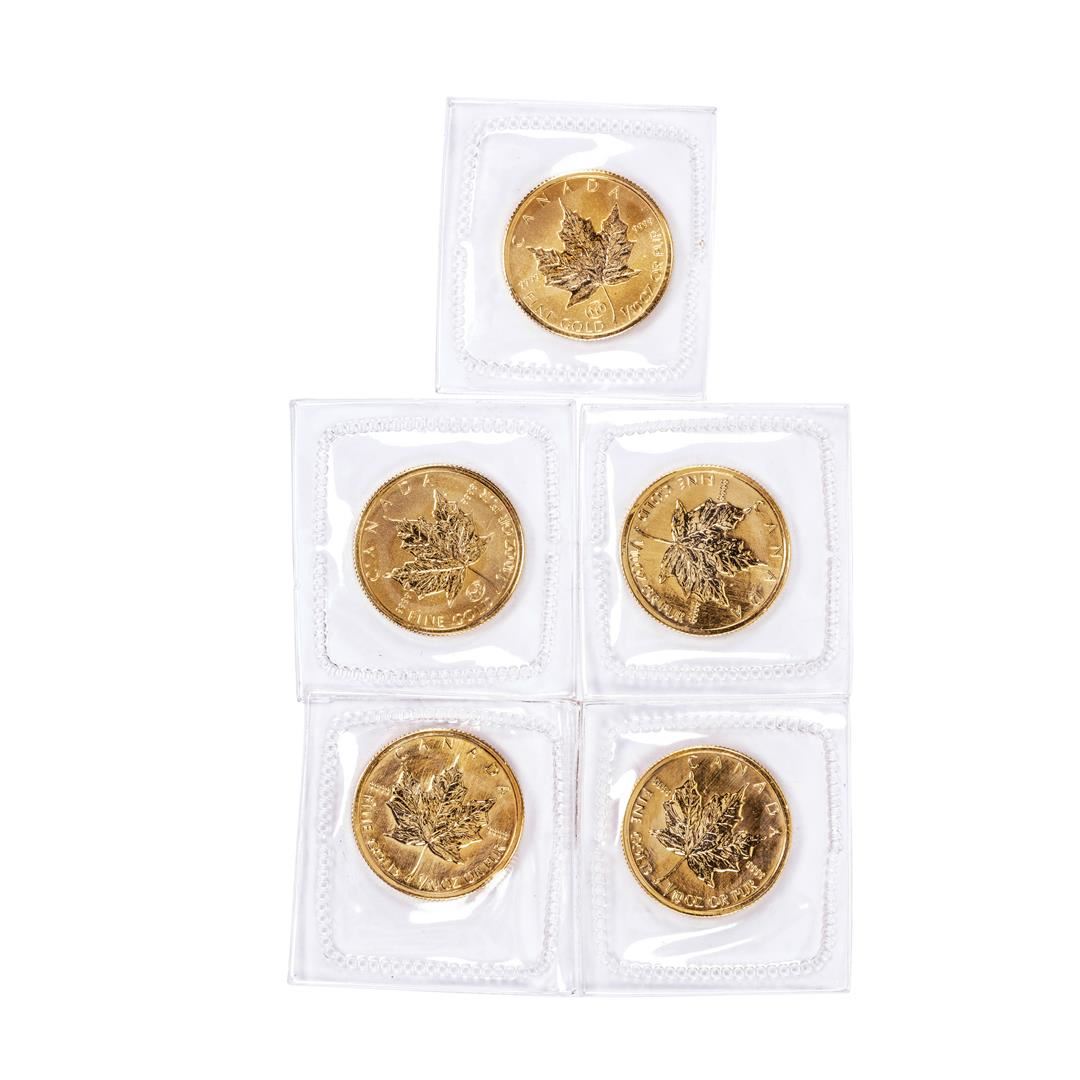 One Lot of (5) Sealed 1997 Canadian $5 Maple Leaf Gold Coins.