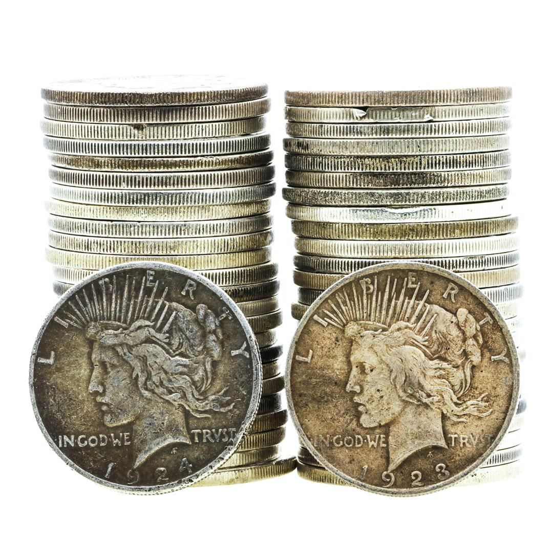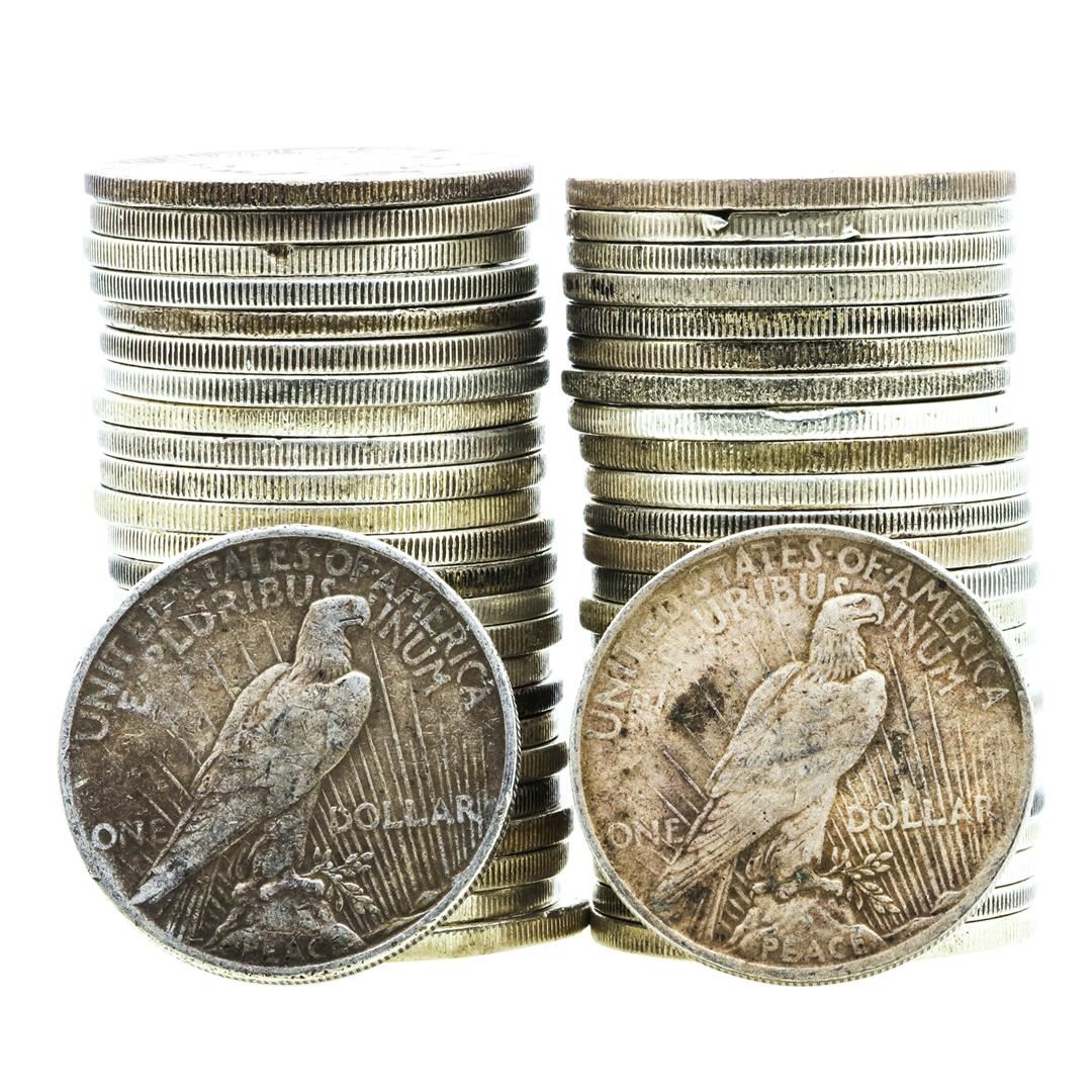 One Lot of (50) $1 Peace Silver Dollar Coins Culls.