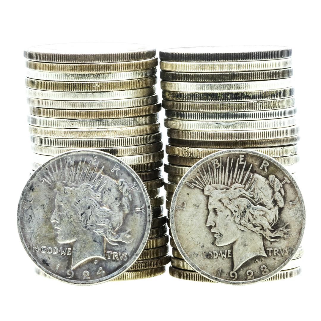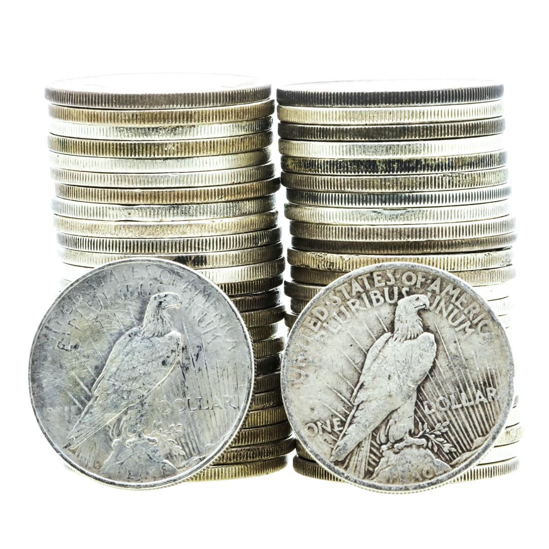One Lot of (50) $1 Peace Silver Dollar Coins Culls.