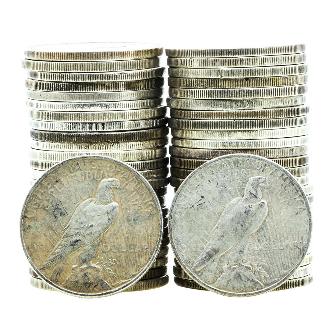 One Lot of (50) $1 Peace Silver Dollar Coins Culls.