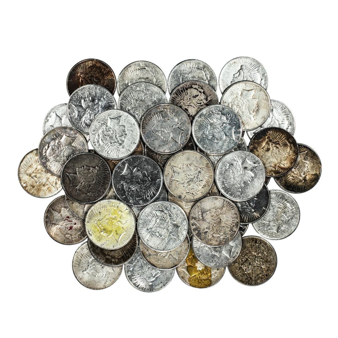 One Lot of (50) $1 Peace Silver Dollar Coins Culls.