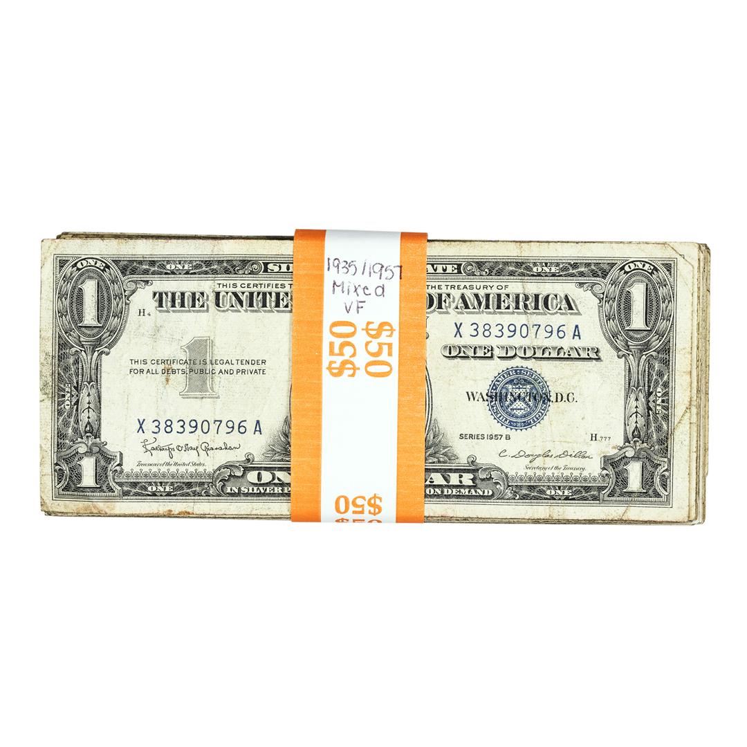 Lot of (50) Mixed Series 1935/1957 $1 Silver Certificate Notes - Very Fine