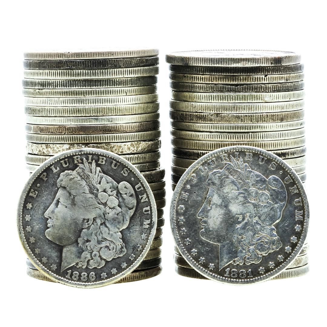 One Lot of (50) Pre-1921 $1 Morgan Silver Dollar Coins.