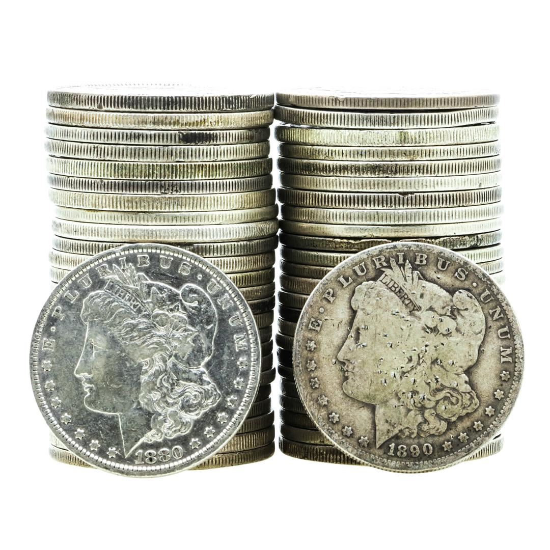 One Lot of (50) Pre-1921 $1 Morgan Silver Dollar Coins.