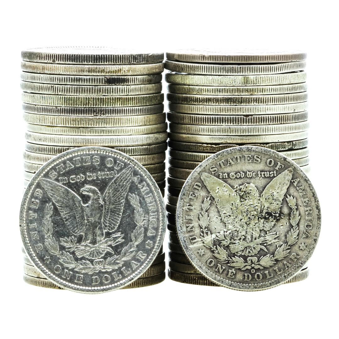 One Lot of (50) Pre-1921 $1 Morgan Silver Dollar Coins.